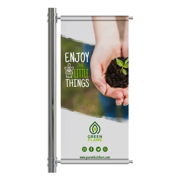 Pole banners are displayed between two poles on the street and light posts on main roads, boulevards, and avenues in cities and on campuses—perfect for advertising your products outdoors or indoors.
