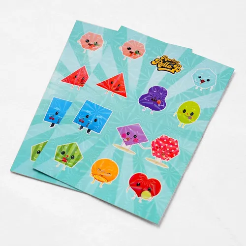 Our sheet stickers are printed on white paper, clear plastic, and gold or silver foil paper — but that doesn’t mean that you’re limited to these color options alone. With our all-over printing, you can use any colors you want for your design.
