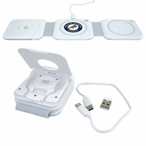 This is the perfect travel kit for busy teams that travel a lot for business and need to keep multiple devices charged and ready to go. It comes with our new Chi-Charge Snap(#2285) that wirelessly charges a phone, Apple Watch, and AirPods. It features a compartment that conveniently stores a USBC-to-USBC cable and a Type-C-to-USB adapter. Additionally, the kit comes with our new slim and convenient USB-C and USB-A AC adapter(#2181). It all comes neatly packaged in a stylish portable zipper case.