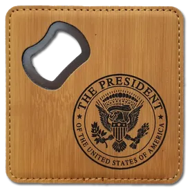- Get your own Leather Bottle Opener Coaster. Enhance your way of giving gifts and promoting your businesses. Through this new coaster, you can create your own layout for the design that will stay on display at homes, restaurants, bars, and other plans you can think of. This multipurpose coaster can be an adornment and at the same time protects tabletop from water marks. Personalize your coaster now and make an impact!