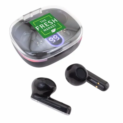 Soundwave Lumi wireless earbuds have a fun clear top case with decorative colorful light-up accents. Easily check the power level from its bright LED display. Each earbud has a clear side panel that displays the actual technology that delivers premium sounds for work, entertainment, and calls.