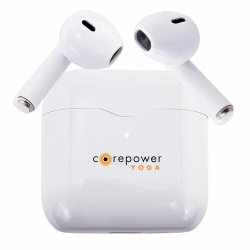 Our Soundwave Nano wireless earbuds have a simple and sleek design that would look great with any logo. It features touch control for easily managing music, calls, and voice assistants for those busy teams that are always on the go.