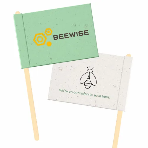 Seed Paper Flags are the perfect eco-conscious detail for food, drinks, or event decorations. Lightweight and impactful, each flag carries your brand message while promoting sustainability. Guests can take them home, plant them, and grow wildflowers, reinforcing your brand long after the event.
