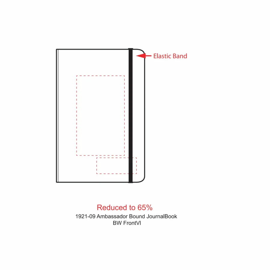 The 5.5 x 8.5 FSC Mix Ambassador Hardcover Bound Journal is a hard cover bound journal with 80 sheets of cream lined paper. The Journal features built-in elastic closure, ribbon page marker, and expandable accordion pocket.