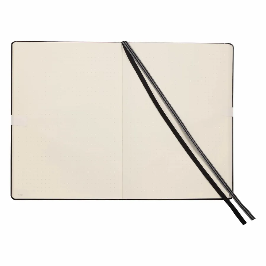 The Leuchtturm1917 Classic Hard Medium Dotted Notebook is a staple notebook for everyday notetaking. Features include a hard bound cover, 251 numbered dotted pages, gusseted back pocket, 2 ribbon page markers and elastic closure.