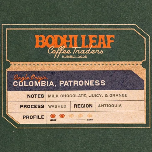 Colombia Patroness Country: Colombia Region: Antioquia Process: Washed Cupping: Juicy, Milk Chocolate, Orange Roast Profile: Light - Medium Description: A juicy coffee with incredible depth. The taste of milk chocolate, balanced with citrus acidity makes Colombia Patroness a fantastic cup of coffee.