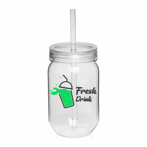 24 oz.Drink Easy Mason Jars with Straw are the perfect way to enjoy your favorite drinks on the go. These durable and lightweight jars are made with single wall construction and feature a matching straw and lid. This product is available in a variety of colors. Order your 24 oz Plastic Mason Jars with Straw today and enjoy your favorite drinks hands-free!