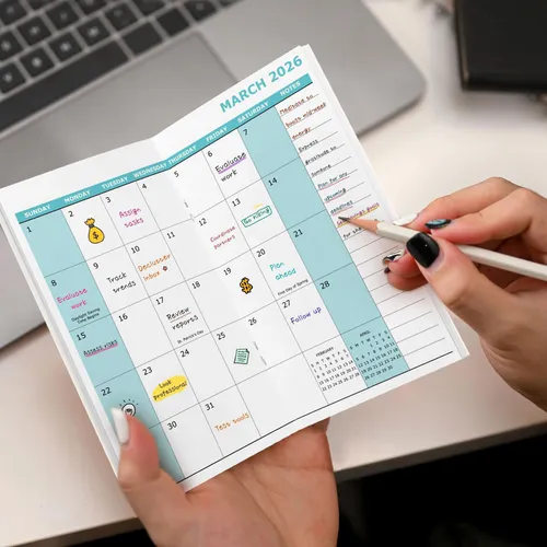 A portable planner designed to fit in your pocket or bag, perfect for weekly planning on the go.Size: 3.7 in x 6.8 inCover: Double adhesive paperPages: 128 pages (70g writing paper)Layout: Includes weekly planColors: White, Pink, Green, Navy BlueCustomization: Gold foil, full-color printingMaximum Printing Area: 2 in x 4 inIdeal for staying organized anytime, anywhere with a stylish, pocket-friendly planner.