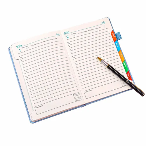 A stylish, durable planner with a convenient strap closure, perfect for organizing notes, schedules, and ideas on the go.Size: 5.8 in x 8.3 inCover: Color-changing PUPages: 200 sheets / 400 pages (80g paper)Colors: Green, Blue, Purple, Black, Orange, PinkWeight: 515gCustomization: UV printing, foil printing, debossingImprint Area: 100 mm x 100 mmIdeal for professionals and students who want both style and functionality in one planner.