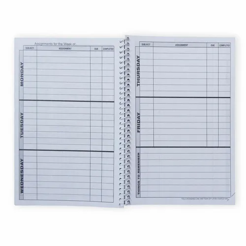 A practical planner designed for students and professionals, featuring a week-to-view layout and flexible spiral-bound cover for easy use.Size: 8-3/8 in H x 5-3/4 in WCover: Flexible coated paperPages: 100 pages (80g paper)Layout: Week-to-view, two-year calendar, class scheduleColors: Dark Blue, Burgundy, White, BlackCustomization: UV printing, foil printingPerfect for keeping schedules organized while adding a touch of professional style.