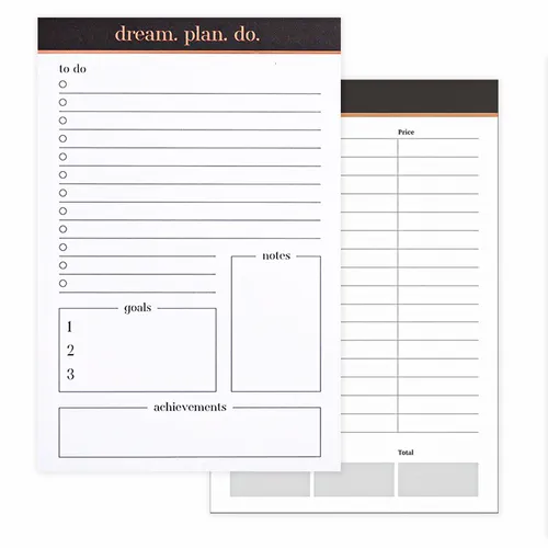 A versatile notepad designed for weekly planning, perfect for study schedules, work tasks, or personal goals.Size: 6 in x 9 inMaterial: 100gsm writing paperPages: 50 pagesLayout: Full-color printing to the edgePrinting Method: UV PrintingFeatures: Thick, smooth paper for effortless writingColor: WhiteIdeal for anyone looking to stay organized with a simple, practical, and stylish weekly planner.