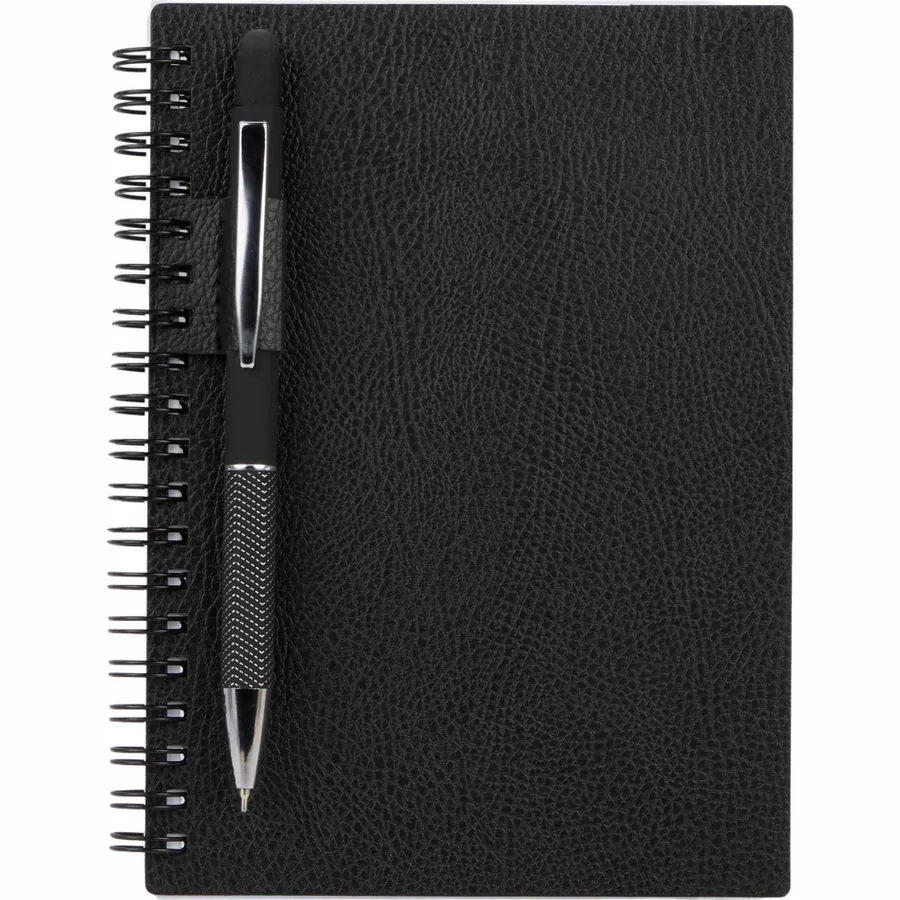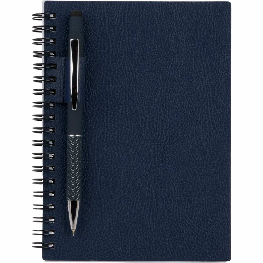 Take notes the sustainable way with the 5” x 7” FSC Recycled Pebble Spiral Journal. This journal features a durable cover made from recycled materials and 72 sheets of FSC recycled lined paper and color matching pen loop. By choosing this journal, youre making a positive impact on the environment, as one percent of sales are donated to environmental nonprofits through a partnership with 1% For The Planet.