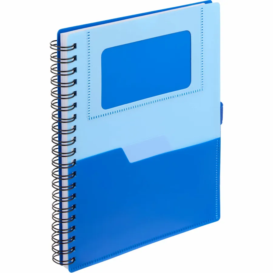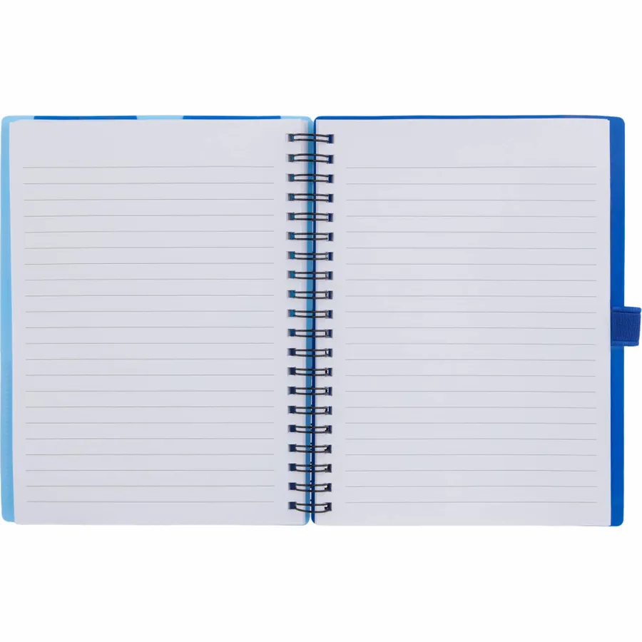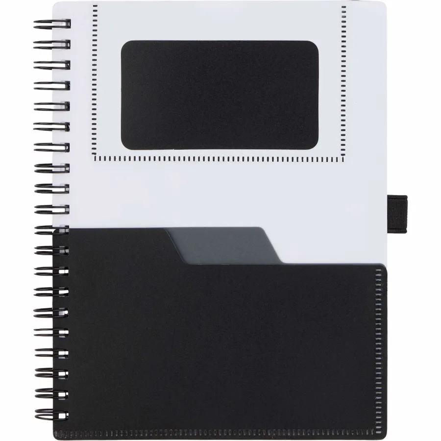 The 5 x 7 FSC Recycled Stash Spiral Notebook keeps notes tidy and accessible. Its durable 100% recycled PP cover includes two front pockets and a business card slot, plus a matching pen loop. The spiral binding lays flat for comfortable writing across 80 sheets of FSC recycled paper—ideal for meetings, classes, or daily journals. By choosing this notebook, youre making a positive impact on the environment, as one percent of sales are donated to environmental nonprofits through a partnership with 1% For The Planet.