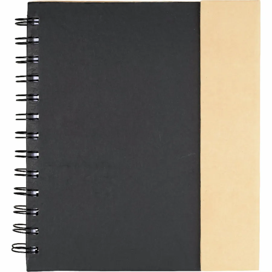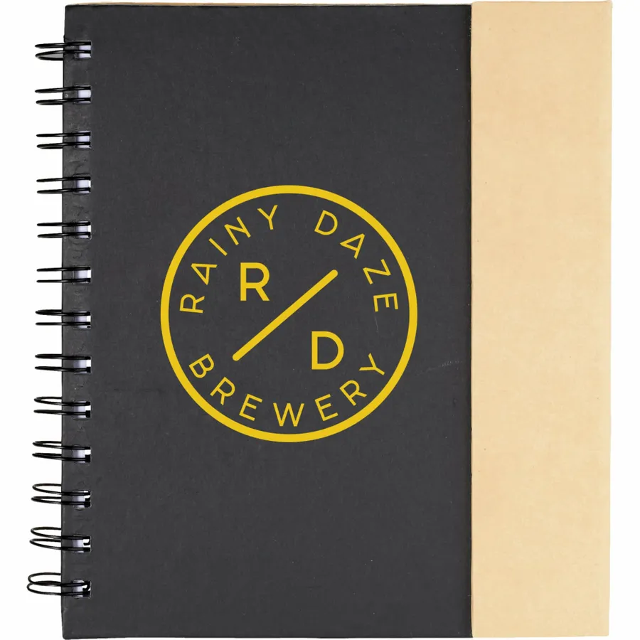 The Bullet 6.5 x 7 FSC Mix Lock-it Spiral Notebook features 70 ruled pages of FSC Mix paper and a magnetic closure. It also includes 25 sheets of 4 x 3 sticky memo pads and 25 sheets of 3 x 2 sticky memo pads in 5 assorted colors. The Lock-it Spiral Notebook also comes with a recycled cardboard ballpoint pen. Note that a pen imprint is not available and pens are packed separately.