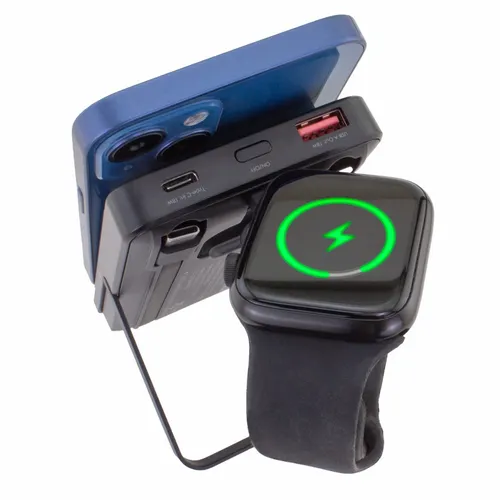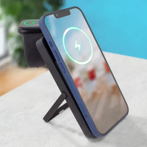 - 3-in-1 Mag-N-Kick™ Power Bank with Fast Watch Chargers