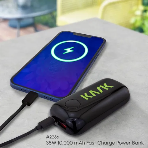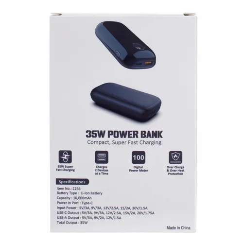35W super fast charging power bank with a power-level display and a Type-C in/out port. Super portable with a sophisticated and compact design, it can easily slip into a pocket, bag, or carrying case. This is a great gift for any busy business team or for those who travel often.