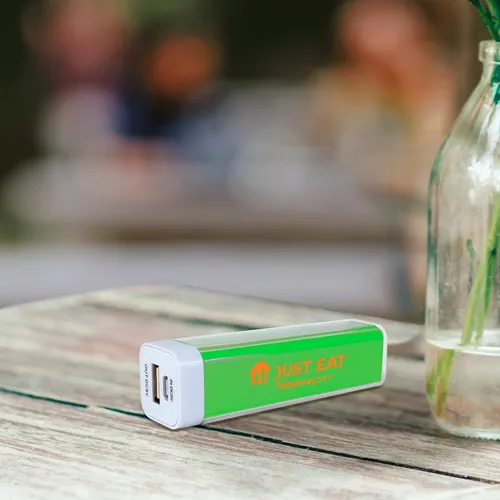 This plastic portable USB charger features a 2000 mAh battery and one USB charging port. Perfect for Smart Phones, and more!