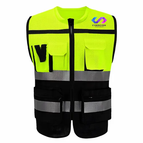 Take on the toughest worksites with confidence in our Heavy-Duty, Two-Tone Safety Vest. Built from durable warp-knitted fabric, this vest is designed to deliver exceptional strength, comfort, and long-lasting performance in demanding environments. The two-tone color design with contrasting black trim not only enhances visibility but also gives a sharp, professional look that hides dirt and wear. Equipped with five practical pockets, Velcro-secured on the top and zippered on the bottom, it provides convenient storage for tools and essentials, helping your team stay organized on the job. Add your company logo to elevate your crew’s professional image and showcase your brand’s dedication to safety, reliability, and quality.
