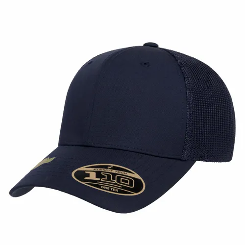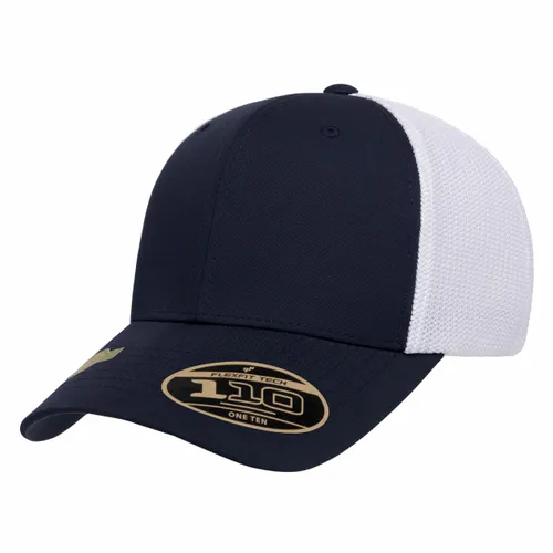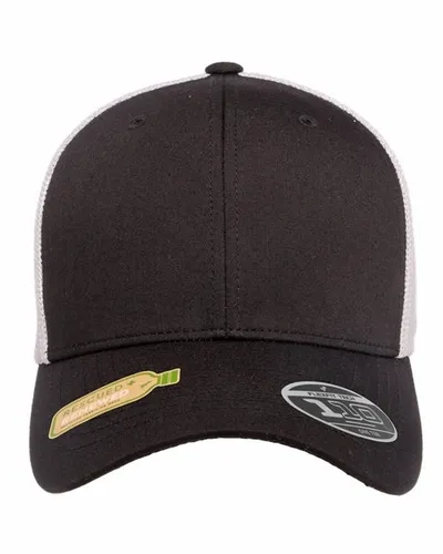 98% Recycled Polyester/2% PU Spandex Structured, Six-panel, Mid-profile, 3 1/2″ crown Permacurv® Visor Adjustable + Flexfit® Tech Snapback Closure