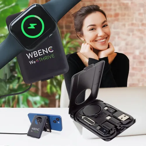 - Chi-Charge Cable Card with Watch Charger - Collapsible Wireless Charging Stand and Charging Cable Carriers