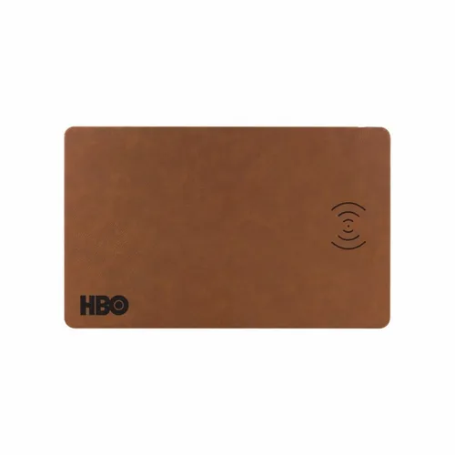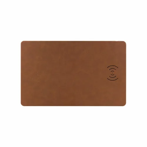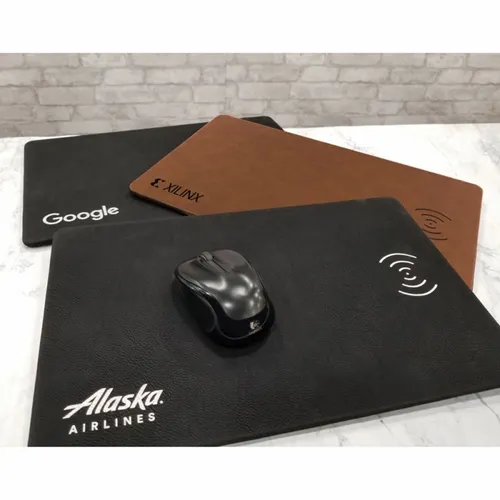 Well designed leatherette wireless charging mat and mouse pad makes an excellent desktop piece, helping to reduce clutter in style and to keep your phone charged up. Decorate with full color printing or laser engraving. Laser engrave on black to show your logo in silver. Laser engrave on brown to show your logo in gold.