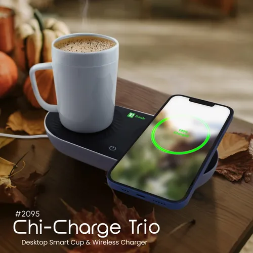 The Chi-Charge Trio is one of the smartest desktop companions anyone would love to have at home or office. It helps keep wirelessly charged devices powered up and regulates the temperature of hot and colds. It is easy to use and comes with a mug too.