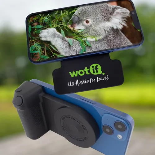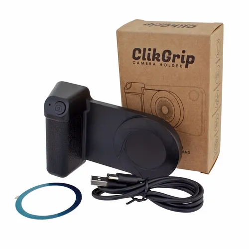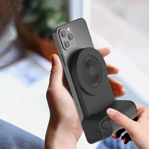 A camera grip-inspired design that brings comfort and stability to video and photo capturing. Simulate the feel of a camera grip with the ClikGrip phone holder. Magnetically attach to newer smartphones with MagSafe tech. Comfortably capture precious moments with the wireless-enabled shutter button. Plug in the ClikGrip and charge compatible wireless charging phones. It's a convenient phone stand for the office, at home, or while traveling for business.