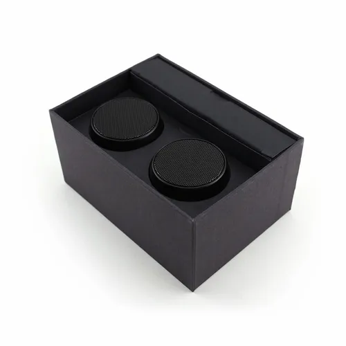 Portable stereo surround sound speakers that come with a beautiful custom full-color sleeve for maximum brand exposure. Simply pair this stylish pair of wireless Speakers to each other, and then to your smartphone to enjoy the sound of your favorite music and movies all around you! You can also loan one to a friend as the Nano Twins can be used independently as well!