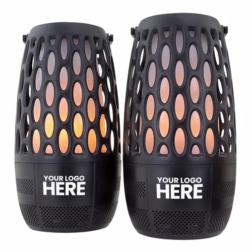 A fun pair of wireless speakers with different lighting modes and built-in sounds. Each has a handle, to easily suspend on a hook, and an attachable pole for placing them to the ground. When paired together, they support a True Wireless Stereo (TWS) function.